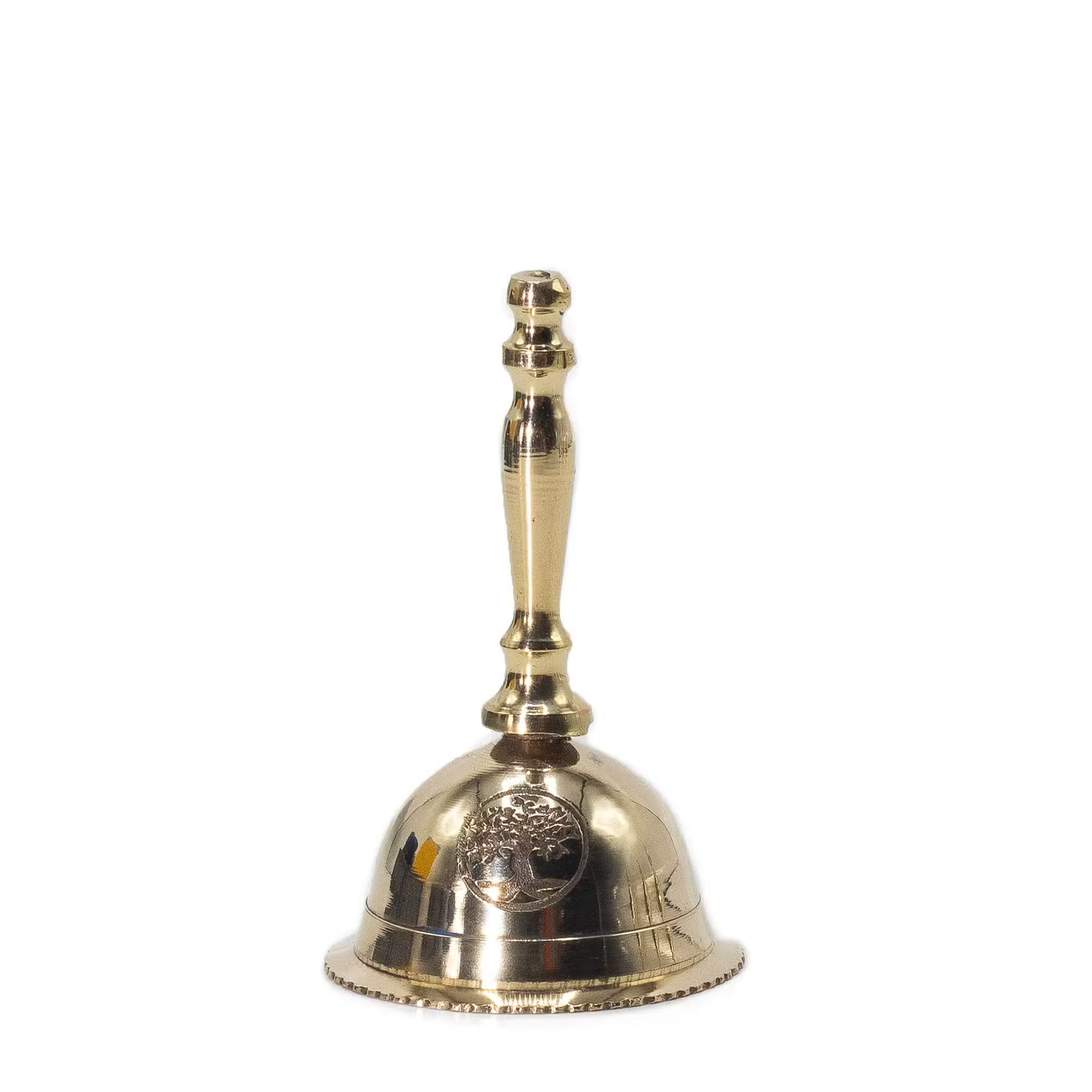Denna vackra mässingsklocka med Livets Träd bär en symbol för sammankoppling, balans och livets ständiga tillväxt. Den klara tonen från klockan används ofta i ritualer och meditation för att markera början eller slutet av en stund av närvaro.