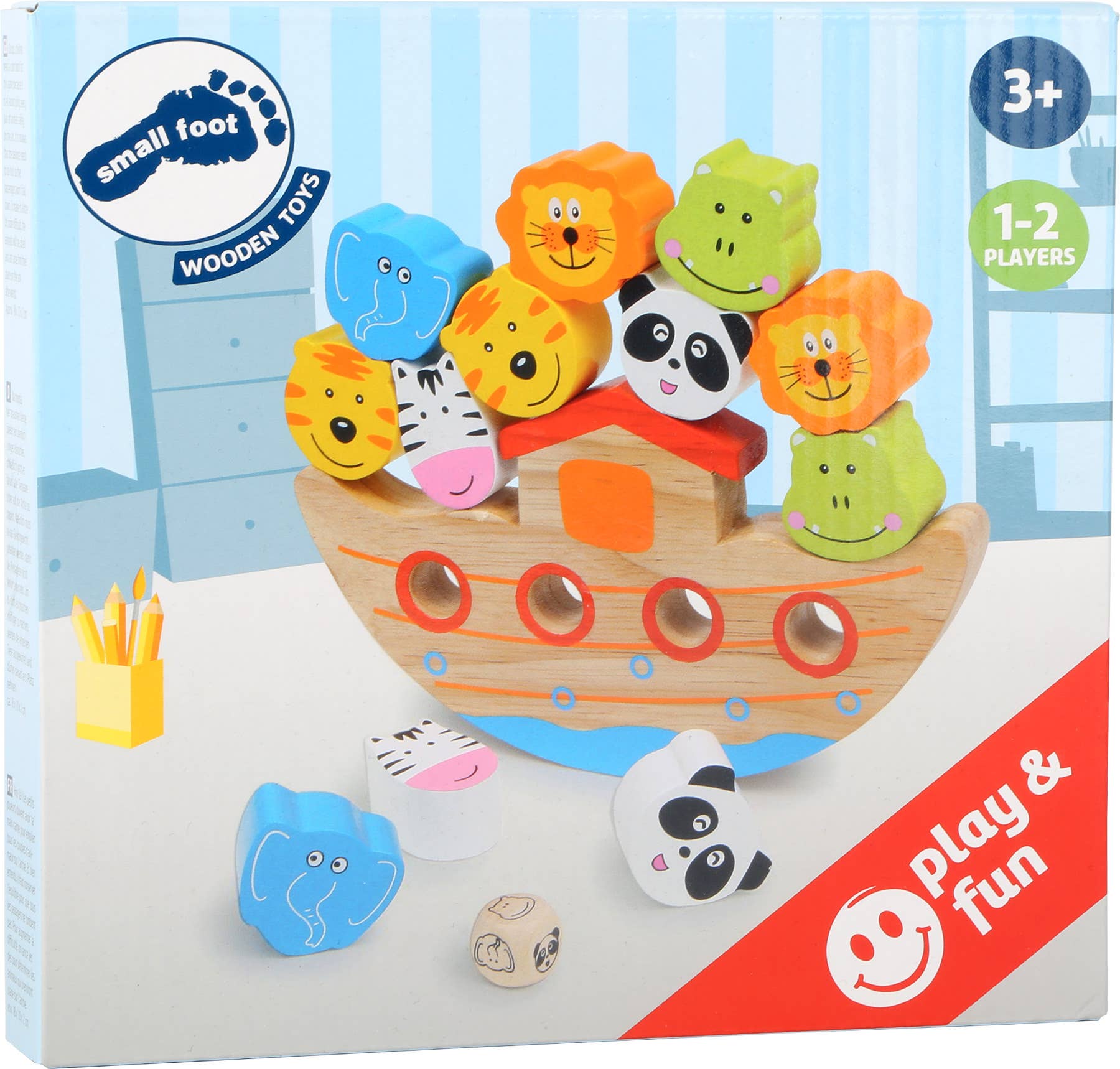 Detta färgglada balansspel bjuder in små spelare till ett roligt och klurigt uppdrag: att hjälpa alla djurpar att hitta sin plats på arken – utan att någon faller över bord!