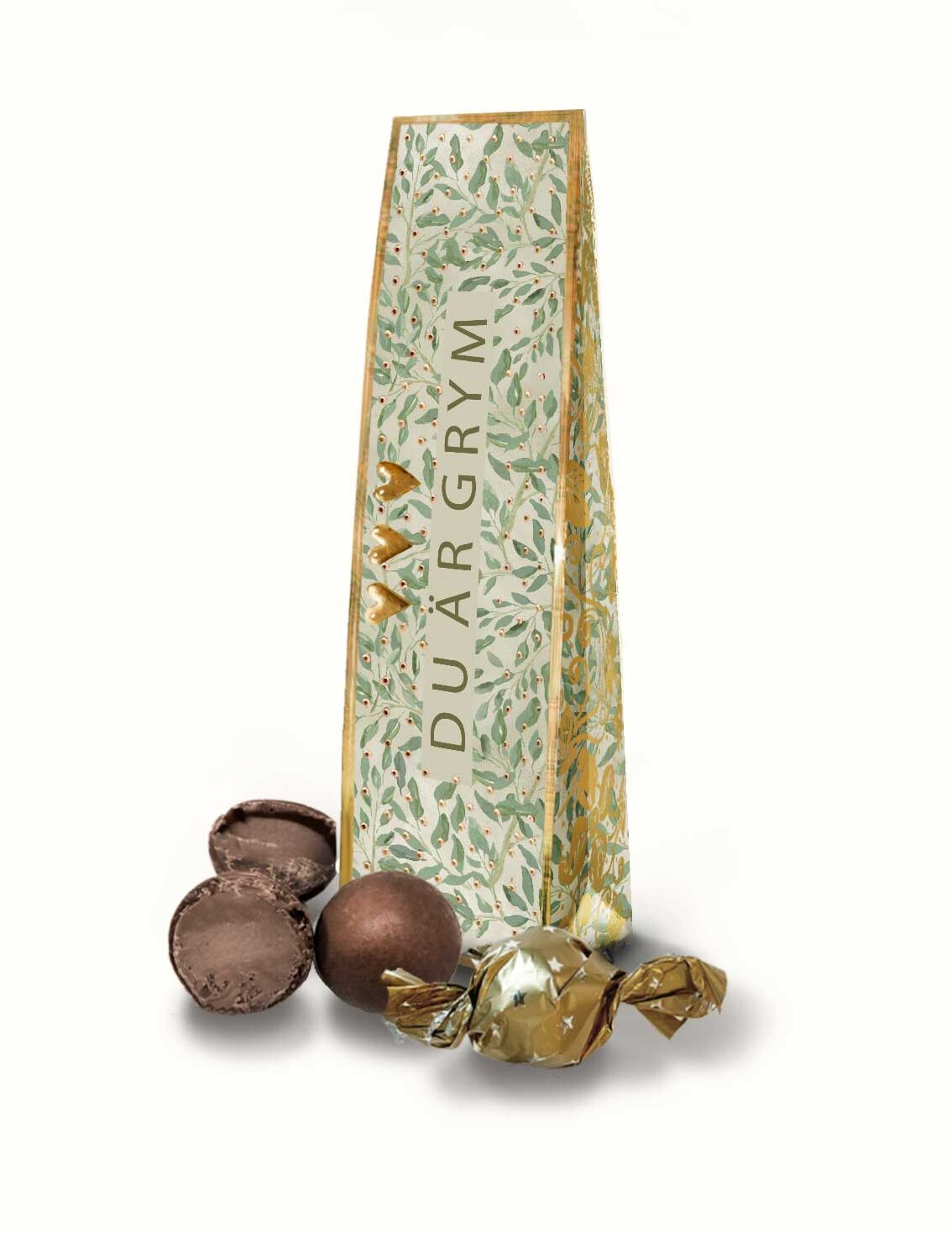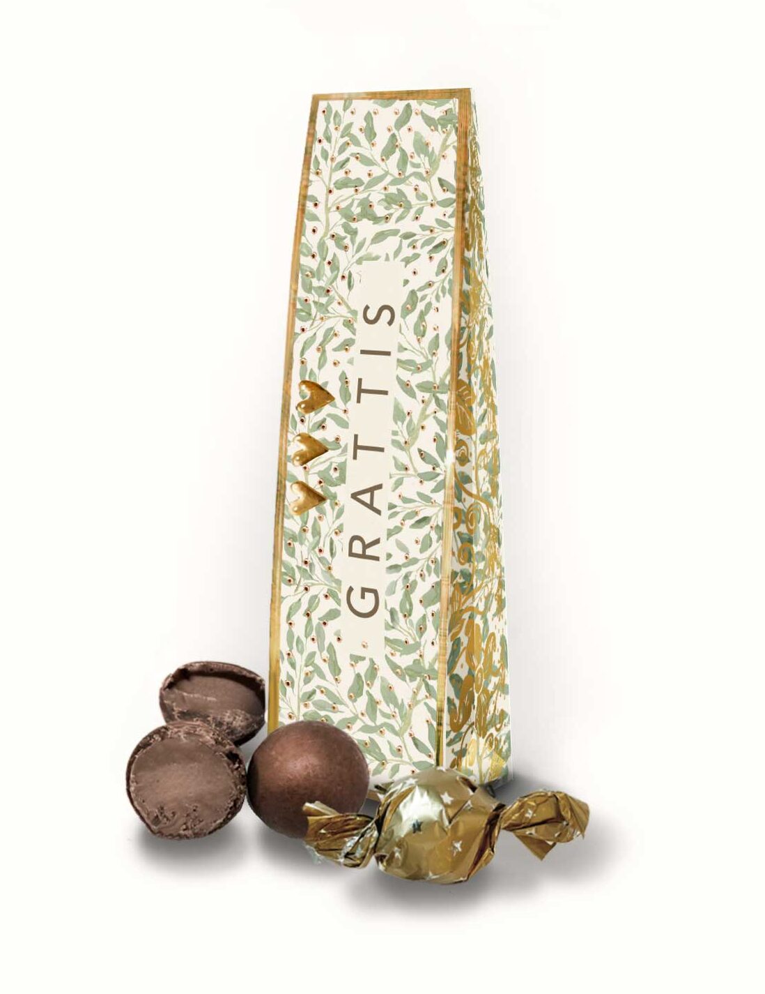 Dessa chokladkort är en underbar kombination av smak och omtanke. Varje kort innehåller 40 g choklad i form av tre stora chokladpraliner av fin kvalitet, fyllda med en härligt krämig kakaofyllning som smälter i munnen.