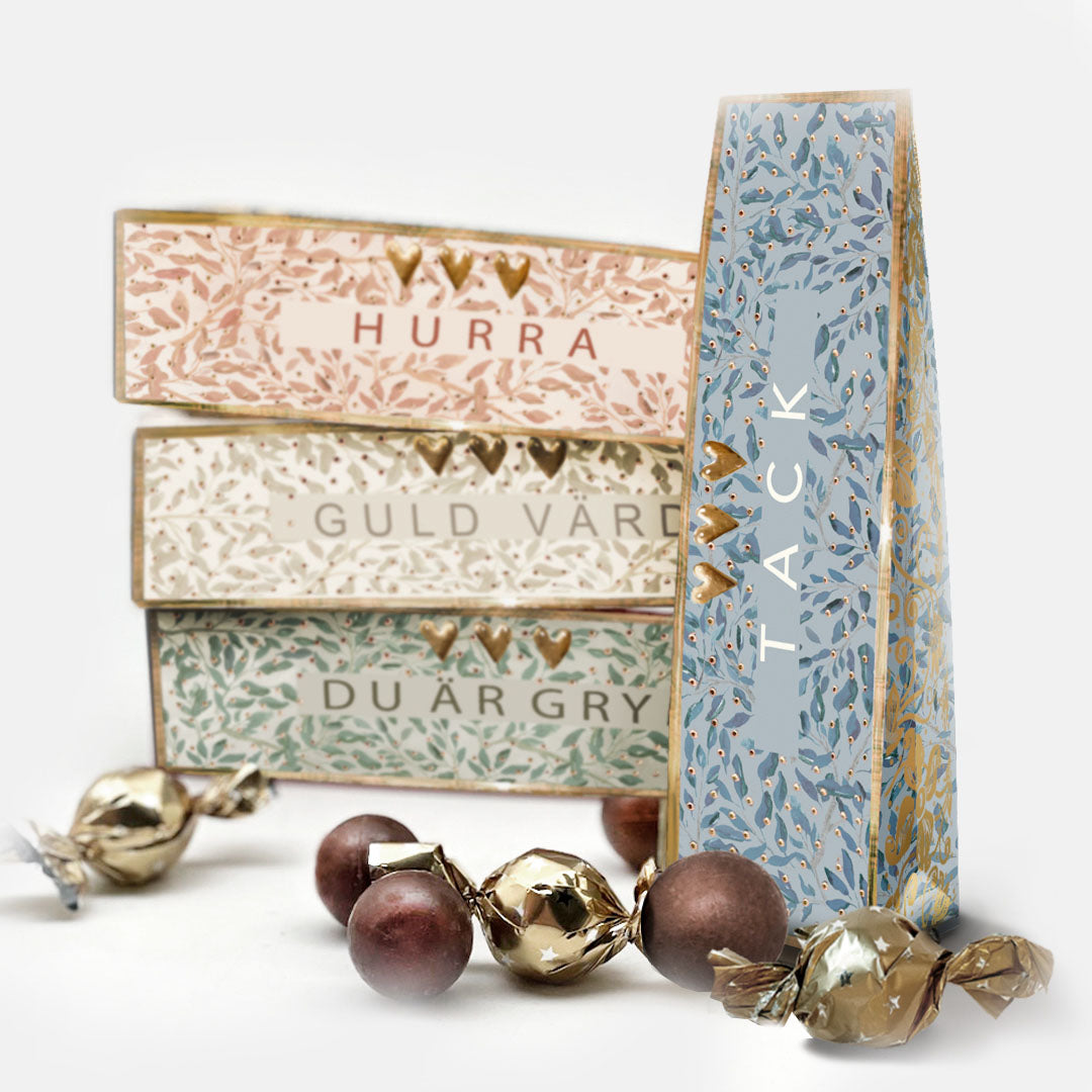 Chokladkorten finns i sex olika varianter, var och en med sin egen hälsning, så att du enkelt kan välja det som passar just tillfället.