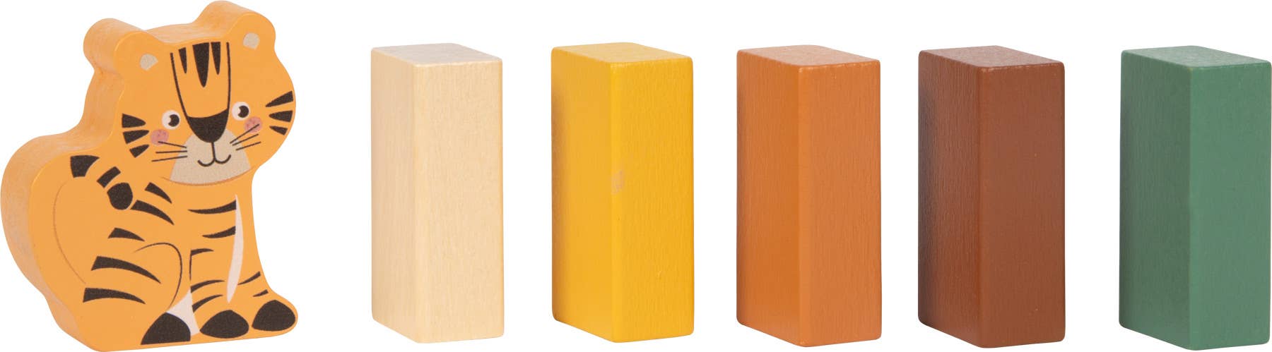 I detta spännande murspel gäller det att, med hjälp av de lilla träklubborna, knacka ut sten för sten från den robusta träväggen – utan att hela konstruktionen börjar vingla. Full koncentration och en stadig hand behövs, för om muren rasar och den söta tigern tappar sin utsiktsplats… då är spelet förlorat!