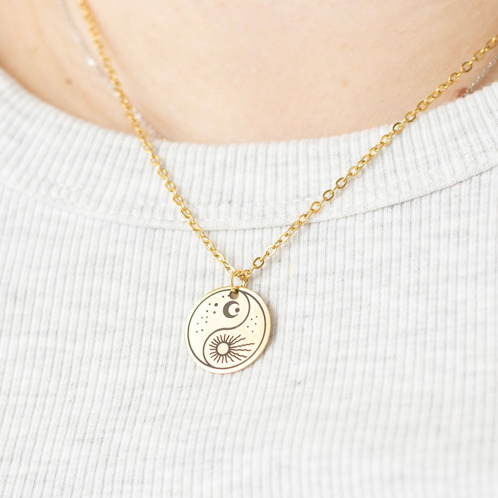 Hitta din inre balans med detta vackra Yin Yang-halsband i rostfritt stål.